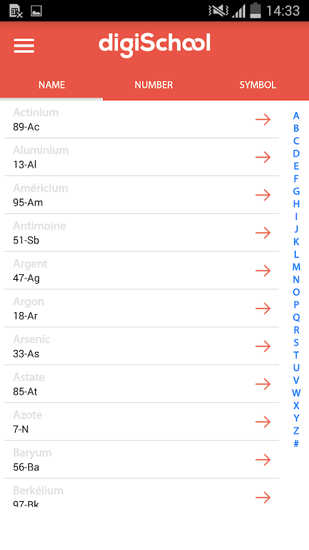 - A listing of the chemical elements by name, number or symbol