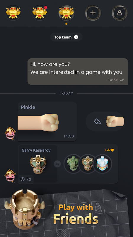 與現實生活中的家人和朋友或您在 Chess Minis 中遇到的新玩家組成專屬俱樂部。從您的跳棋、霰彈槍王、車和 fps 國際象棋戰鬥中休息一下,然後與朋友一起出去玩。分析您的遊戲,獲得個人指導,課程,玩石頭剪刀布,交易或只是放鬆,聊天!