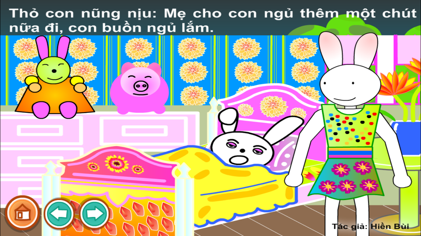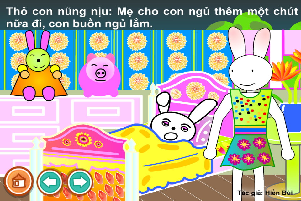 Thỏ con hàng ngày hay thức khuya để xem TV nên sáng ra dậy rất muộn. Thỏ mẹ đánh thức thỏ con dậy để đi học rất vất vả.