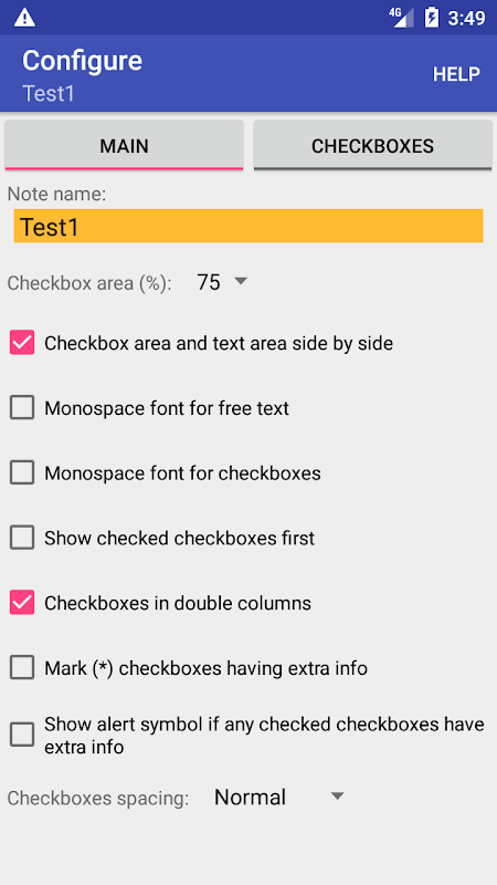 對於每個單獨的音符,你可以配置多大的屏幕將通過複選框區和自由文本區域分別佔據 - 從0到100%。