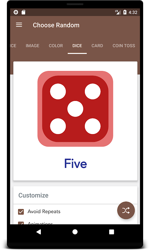 Random, generator, randomizer, dice, random, games, random emojis, random card pick, random shuffle list, random numbers, random letters, random coin toss, random coin flips, random color generator, generate list choice, random image generator, random image wallpaper, randomize lists, random cast lots, random tournament generator, remove ads, in app billing library, random blurred image, random grayscale image