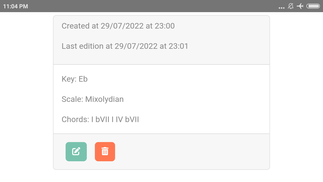 The home screen is a dashboard, allowing you to quickly see all the chord progressions you have created. It is possible to modify or delete them.