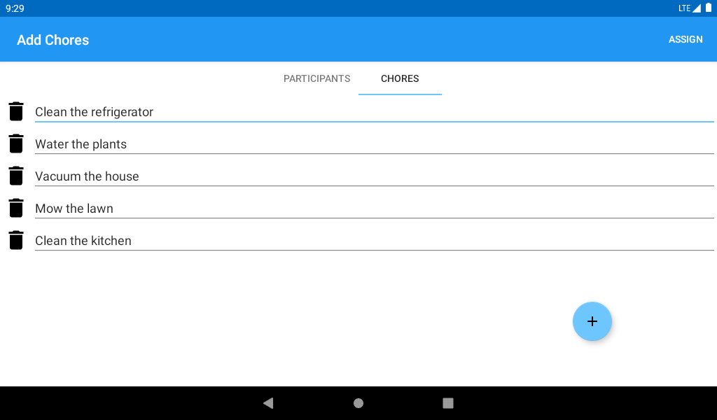 Assign chores fairly! Just add participants and chores and let this app randomly assign each chore.