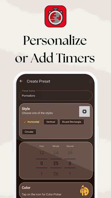 讓您的計時器符合您的美感—圓形、圓形、緊湊型等等。