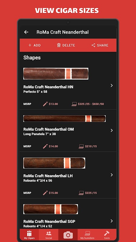 雪茄掃描儀可讓您根據需要創建和管理盡可能多的雪茄盒。從虛擬雪茄盒中添加,編輯或移除雪茄非常容易。在任何時候,您都會知道您有多少雪茄,這些雪茄的價值以及您的雪茄盒中發生的所有動作的報告。