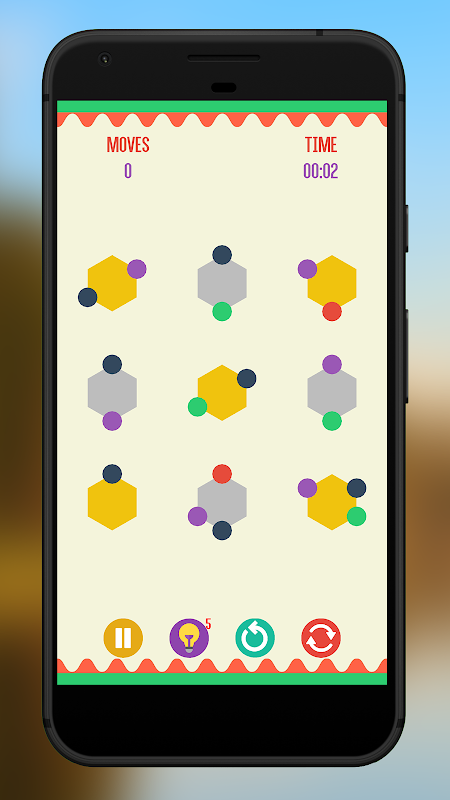 Motive of the game is simple, yet hard to achieve. All you need to do is connect a circle attached to a shape to another circle of same color attached to another shape. All the circles need to be connected to win the game. Connecting the dots would never be easier in this game.