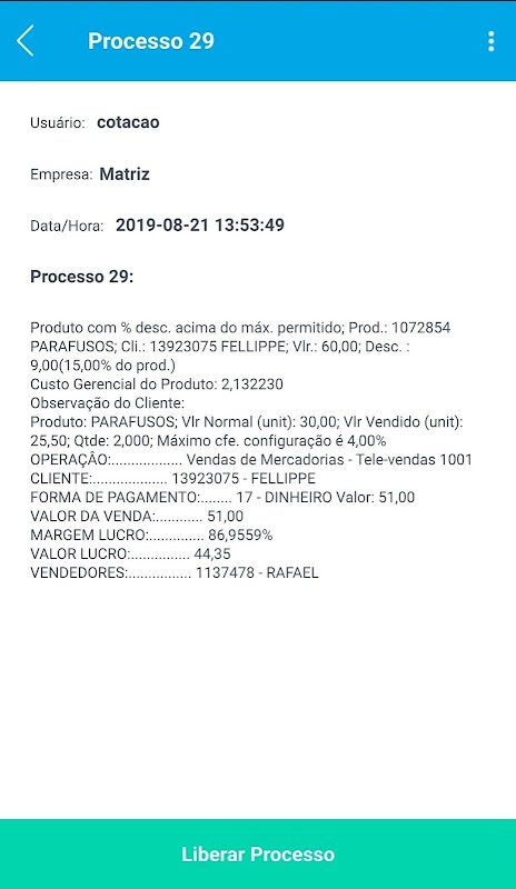 O CISSProcess permite fazer liberação de solicitações de processo para os clientes que utilizam software e serviços da CISS.