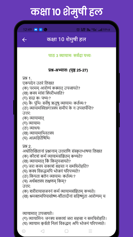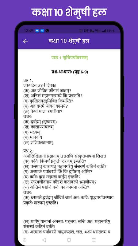 This application contains class 10 sanskrit ncert books shemushi solution chapter wise with brief description . This application is design for class 10th student each chapter contain detail question and answers chapter wise. Each chapter deal with must to know point. I think this app is must have app for class 10 student.