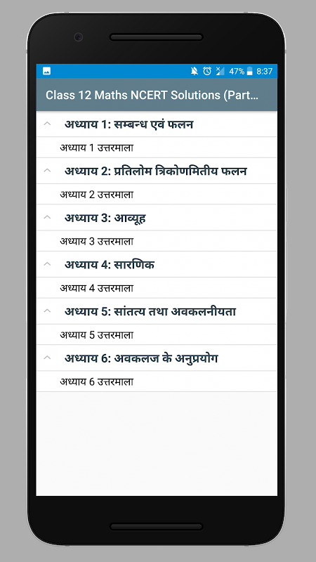 Class 12 Maths NCERT Solutions - Part 1 (Hindi Medium) app is specially designed for the CBSE Class 12 students to help them prepare for their exams. It also helps them throughout the year to complete their homework on time and double check the answers.