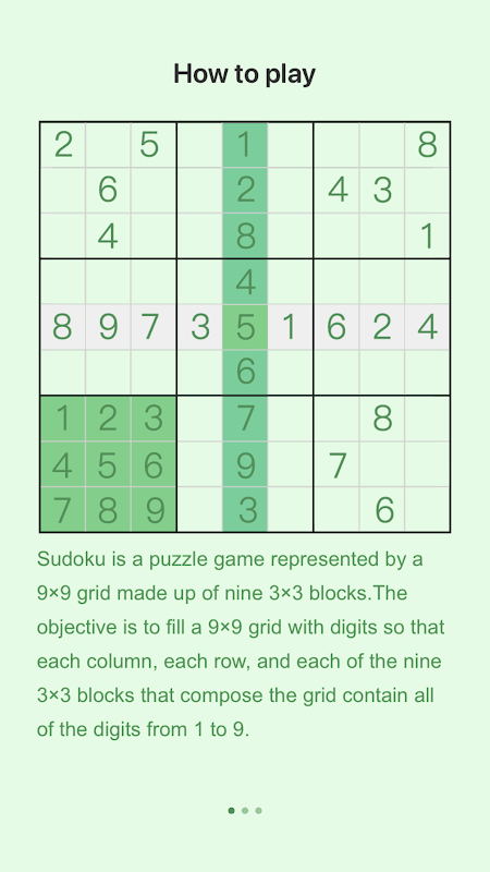 - 在 9x9 網格中輸入數字,以便每一列、每一行和 9 個 3x3 子網格中的每一個都包含從 1 到 9 的所有數字。