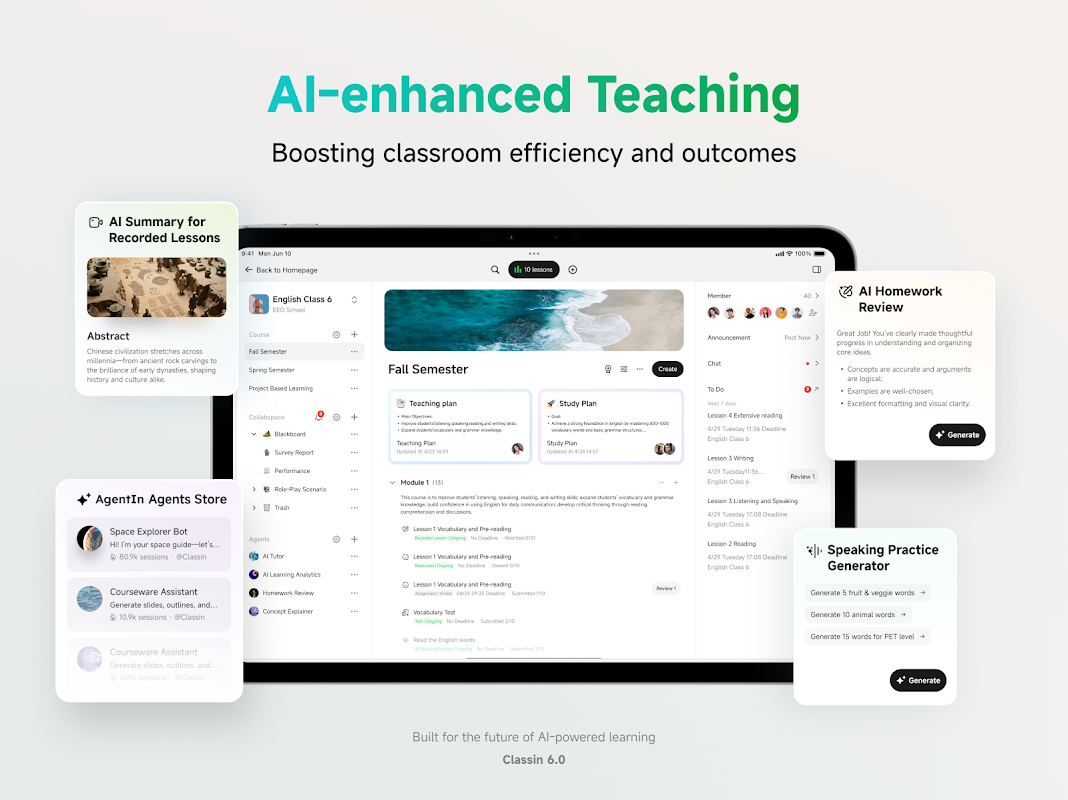ClassIn有效協助K12學校、高校和企業實現高質量的線上線下混合智能教學; ClassIn幫助教育工作者創建以學習者為中心的課程體系、知識空間、學習社區和評價數據;進一步,ClassIn使教師能夠豐富課程和教學,提升學生的核心素養和終身學習能力。
