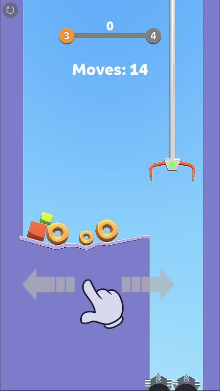 Complete each level by making every piece fall. When the light is green, touch the screen to make the claw machine go where you want and release to start the catching sequence. Be careful to not use all the moves available !