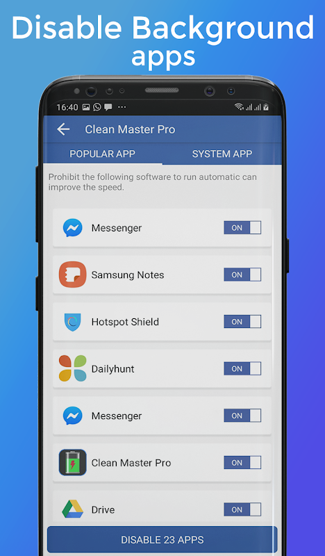 This is fastest aufräumen, its one of best phone speed booster, aufräumen for android to speed up my phone. Its also game booster that help optimisation the device for playing game purpose. antivirus cleaner - Cleaner Master Pro - is a super easy Android Ram Booster, Speed up memory, S aufräumen, Cache Cleaner, calin master , Cooler Master and kill all extra Back running app and increase ultimate boost phone fitness of your device. With this boost phone, you can boost your phone speed by cleaning Ram and save battery usage that makes your battery last longer, and can help you get up to 50% more battery life for your Android phone!. Enjoy this beautifully designed One-Click Ram Optimization, Cleaner Master, Super Cleaner, Battery Monitor & Battery Saver and Booster app, its super easy Cleaner and enhance battery life and make your phone cool!