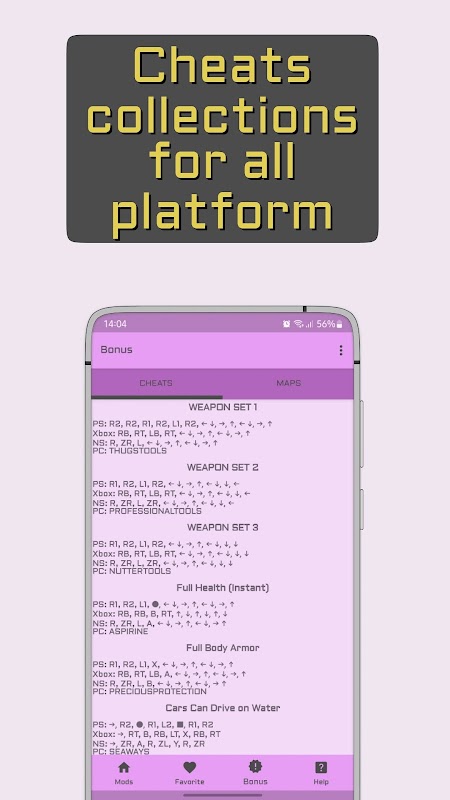 有超過 100 個不同的 mods 和 cleo 腳本的列表,可讓您更改“罪惡都市”中的天氣和時間、車輛、武器、保存、汽車生成器、皮膚、游泳、跑酷、新動畫、新車輪和可以更改遊戲中的選單和控制按鈕圖示等的模組。每個模組都詳細描述了它向遊戲添加的內容、如何啟動它以及它將如何影響遊戲玩法。還可以使用螢幕截圖來提供更多資訊。