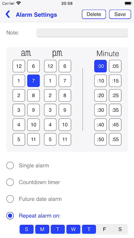 雖然您也可以在應用程式中設定定期重複鬧鐘,但只需單擊即可創建未來 24 小時內特定時間的鬧鐘!