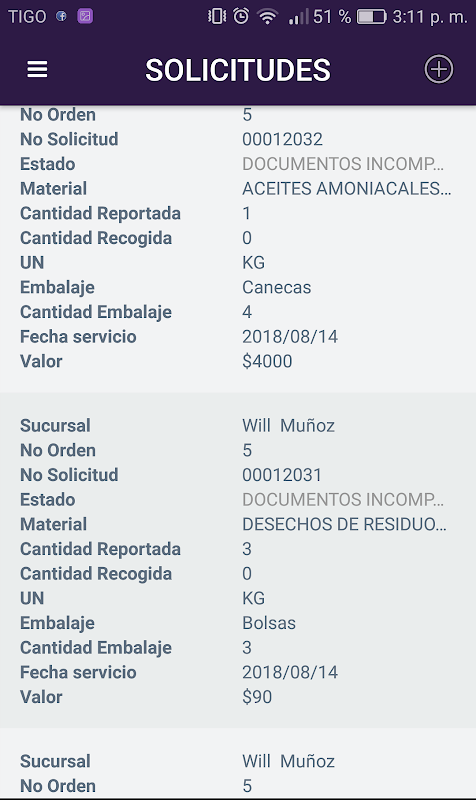 Histórico de ordenes de servicio.