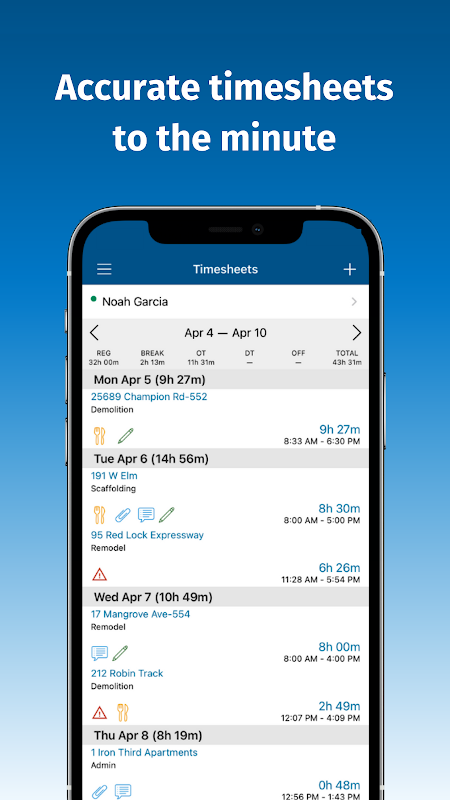 ● 確認您團隊的準確打卡和打卡地點,以獲得更準確的時間表