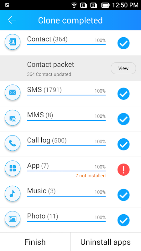 CLONEit can backup and transfer 12 types of mobile data from one phone to another in two easy steps, without the need for a cable, a computer or network.