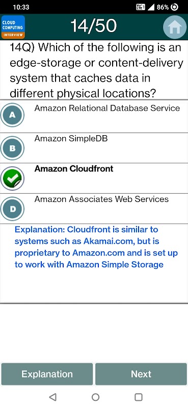 雲計算考試雲計算實踐檢驗的免費APP考試準備。在雲計算實踐的檢驗程序有更多的則2600+選擇題您的雲計算考試的成功。雲計算實踐檢驗的免費應用程序可以幫助你通過你的雲計算面試。
