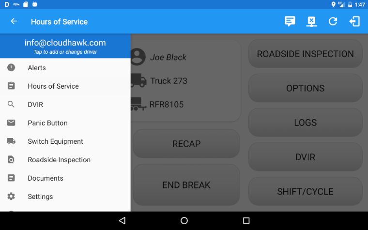 CloudHawk ELD is a powerful but easy to use app that enables drivers of trucks and other long-haul vehicles to track driving and vehicle inspection logs in compliance with FMCSA 2017 ELD Rule.