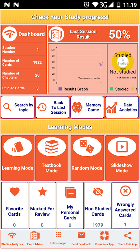 -5種學習模式(學習模式,測試模式,講義模式,測試模式,幻燈片顯示模式和隨機模式)。