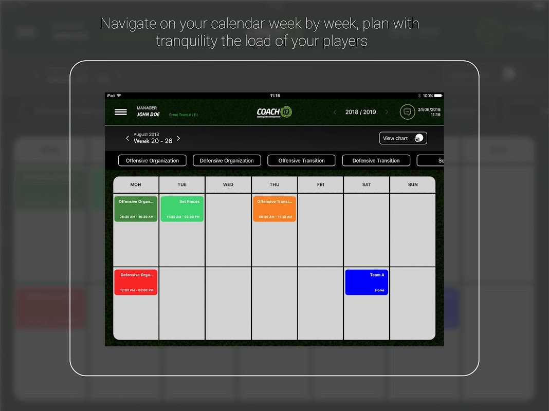 COACH ID is a revolutionary app that allows the Football Coach to create their training methodology, create their exercises, associate them with their game principles, manage their weekly planning, collect statistical data and realize the impact of their training sessions/competition (COACH ID CONNECT).