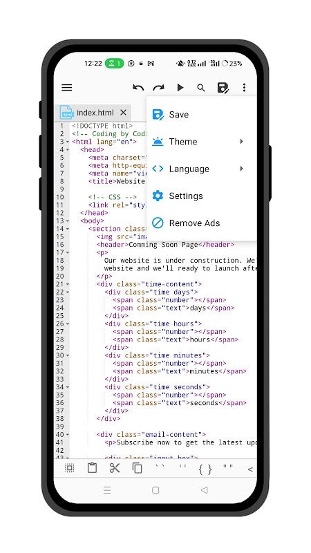 代碼編輯器是為網站、應用程序、博客等編程和製作項目而製作的。它目前支持 7 種編程語言,即 HTML、CSS、JAVA、JAVASCRIPT、C++、C、PHP。將來我們將在代碼編輯器中添加更多語言。您可以在此處編輯項目或創建新項目。您可以輕鬆運行您的網站項目並在移動和桌面模式下觀看輸出。它具有良好且更快的編輯器體驗。您的網站項目將像其他 PC 軟件運行網站項目一樣顯示輸出。
