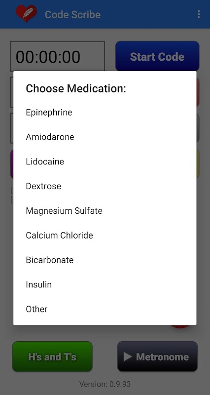 旨在幫助團隊領導或記錄員運行藍色代碼的應用程序。計時器顯示CPR週期和藥物治療之間的時間。在代碼期間記錄所用藥物和其他事件的時間。使用此應用可以幫助更有效地管理和記錄代碼。
