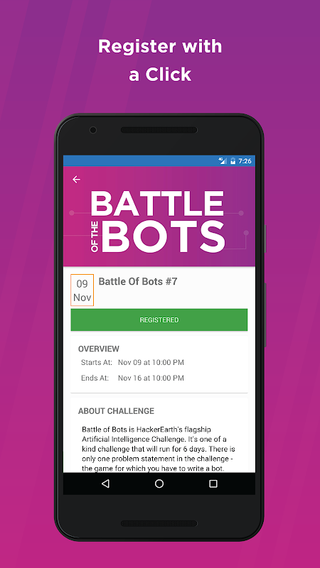 HackerEarth brings to you the best app to register for programming challenges & contests, hackathons and developer jobs. Highly recommended for all coders, programmers and hackers around the world, who are enthusiastic about competitive programming.