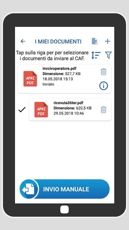 管理的行徑和所有納稅人的文檔。運營商可以通過應用程序直接發送拍攝的文件或在其智能手機已經撤銷的文件,所有行為的文件,其管理並為每個納稅人分配給他。