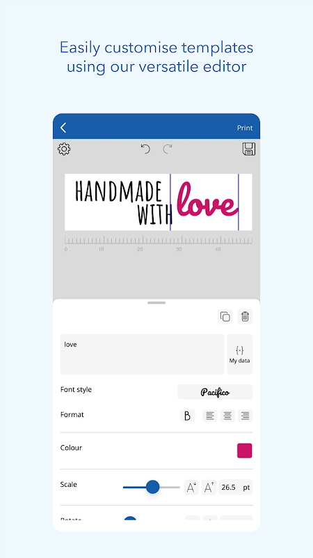 - 無縫連接:透過 WiFi 將您的 e-mark 設備連接到應用程序,以便快速輕鬆地列印您的客製化設計。