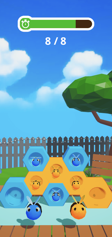 Try to put bees of each color into the corresponding color of the hive, there is a time limit.