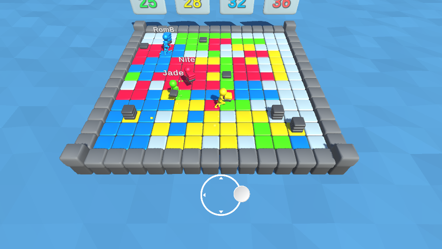 Collect slabs and color the ground before other players ! You can play in multiple modes, against one player or against three players.