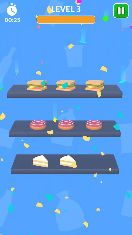 嘗試對基礎中的彩色項目進行排序,直到同一行中的所有顏色項目。將彩色項目從一排放置到另一排以完成關卡。