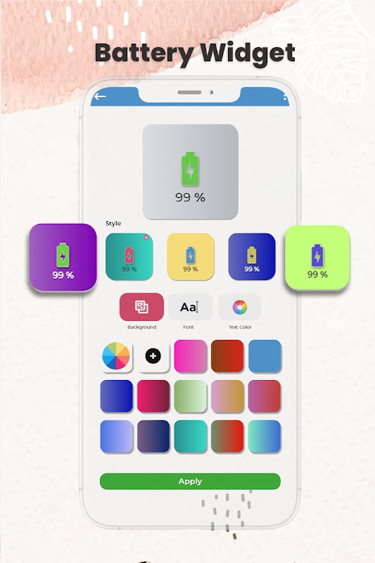- 電池彩色小部件以不同的形狀和動畫顯示您的電池充電狀態。