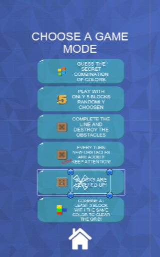 您可以在不同的遊戲模式之間進行選擇:使用有限數量的塊進行遊戲,或者嘗試摧毀板上的所有岩石!