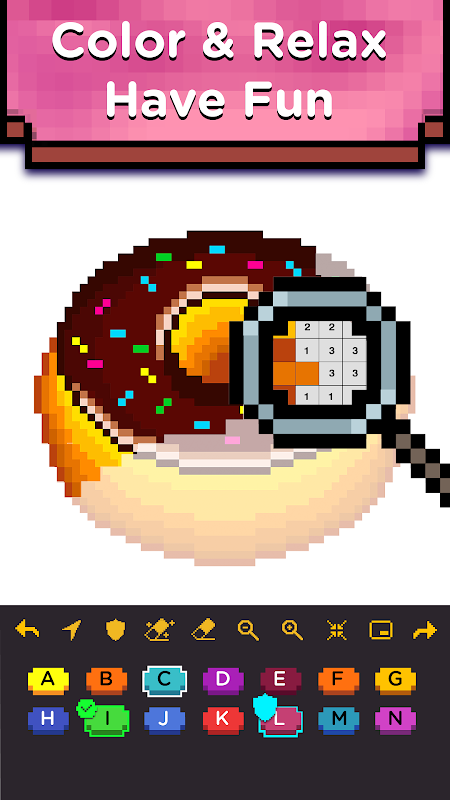 ColorPix: Pixel Art - Color by Numbers Game! app is a color-by-number and color-by-letters app that presents coloring pages with color legends which users fill in pixel by pixel. After you download the Pixel Art Game, you will see lots of greyscaled pictures. These are the patterns for you to color them!
