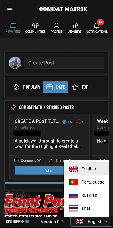 我們的平台結合了粉絲的熱情和戰士的誠實,為任何參與格鬥運動的人提供一個中立的、言論自由的平台,以實現他們的目標。垃圾話絕對是受到鼓勵的,因為它有助於戰士和發起人對他們的活動產生興趣。