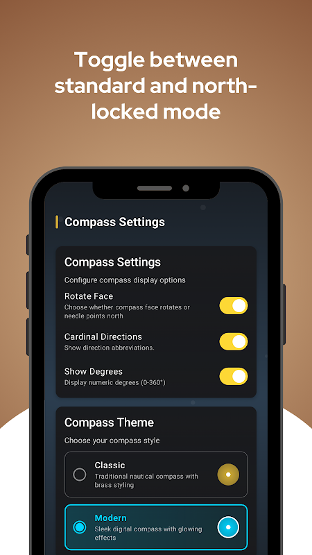 這款指南針應用程式專為在各種 Android 裝置上實現最佳效能而設計,僅需磁力計權限。小巧的安裝體積、高效的電池使用率以及定期更新,確保您的導航體驗順暢無阻。無需笨重的硬件,即可享受精準的測向——無論您走到哪裡,都可以將這款數位羅盤放在口袋中。