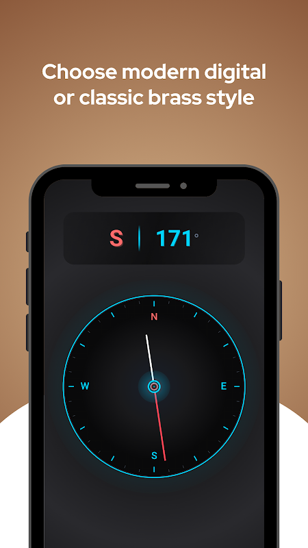 將任何 Android 裝置變身為精準的磁羅盤和導航工具。無論您是在健行、露營、划船還是在城市中旅行,這款指南針應用都能隨時提供可靠的航向資訊。它擁有直覺的設計、精準的感應器讀數和可自訂的樣式,可在您的行動裝置上提供流暢的導航體驗。