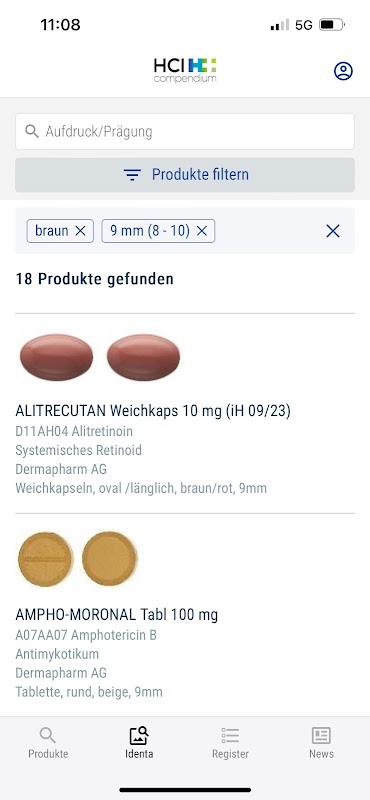 - «Identa»,固體劑型的藥物識別數據庫,可選擇搜索蓋倫製劑、形狀、顏色和壓花或印記。