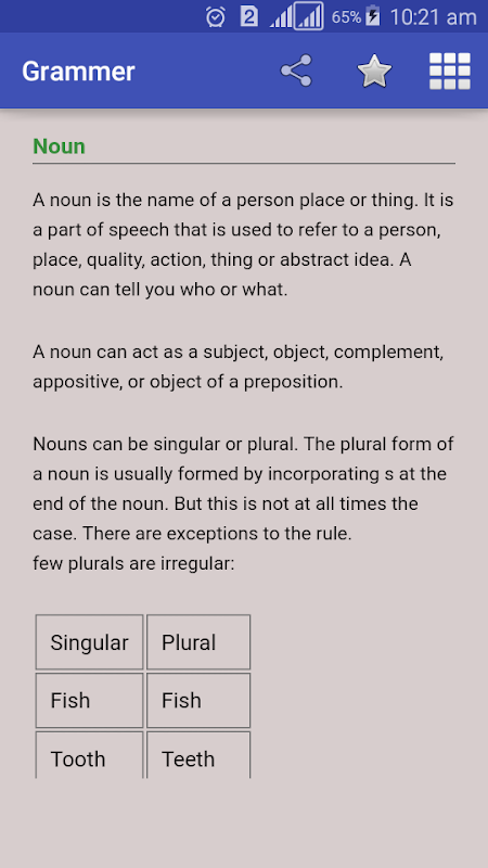 Complete English is a well written and simple English language learning android app that covers grammar, letter writing, Idioms, figures of speech, essay writing, comprehension, pronunciation, listening and oral English in a concise way.