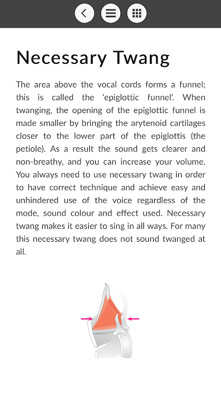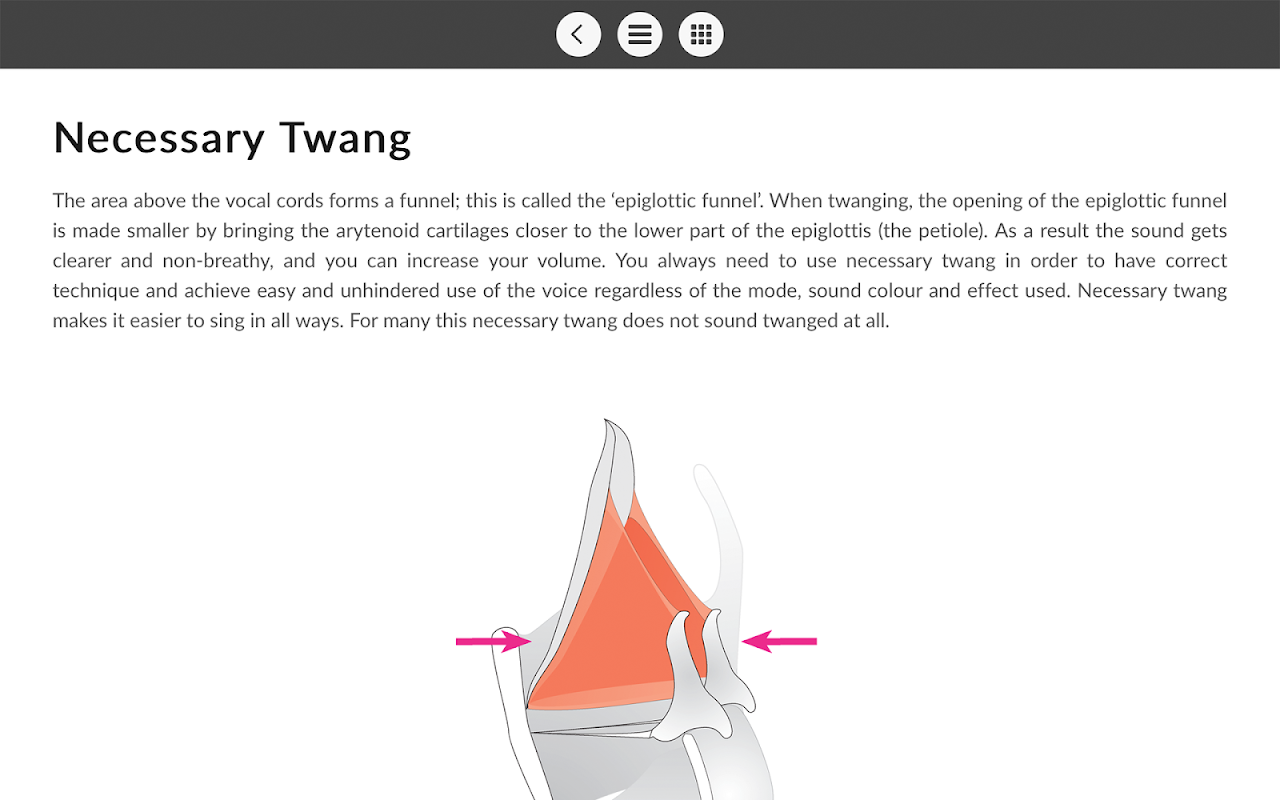With the Complete Vocal Technique app you get your own personal copy of the entire CVT system available at your fingertips. The app combines easily understandable explanations of vocal technique with pedagogical illustrations, graphs, and research to give quick, practical, and applicable solutions to any issue of the voice. All technical, theoretical and pedagogical explanations are supported by an extensive library of sound examples and singing exercises consisting of real life audio examples sung by professional singers. With the Complete Vocal Technique app you have access to all of this in the palm of your hand - in one app - that you can use wherever and whenever you need it.