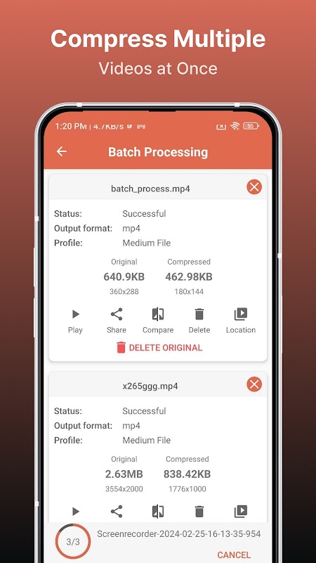 視頻壓縮器-Compact Video應用程序可以壓縮和轉換幾乎任何格式的視頻。它為用戶提供默認的壓縮/預設配置文件。用戶可以選擇所需的壓縮質量,壓縮速度,視頻分辨率,比特率等。此外,該壓縮器和轉換器還允許用戶輸入所需的壓縮視頻大小,然後將視頻壓縮為該大小。您還可以通過排隊多個視頻以批處理模式壓縮視頻。