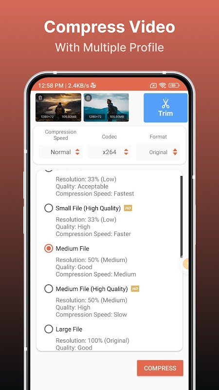這是市場上最好的視頻壓縮器和轉換器應用程序,它提供用於壓縮視頻的所有可能的設置。