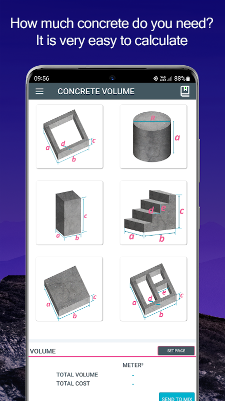 一個簡單的工具來計算澆築板、基腳、柱子和台階所需的混凝土量。