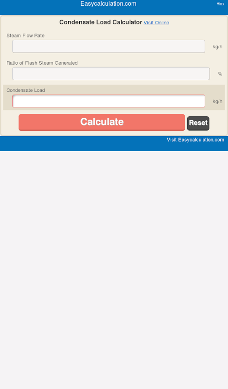 Condensate load calculator: Helps you in performing steam condensation rate based on steam flow rate and ratio of flash.