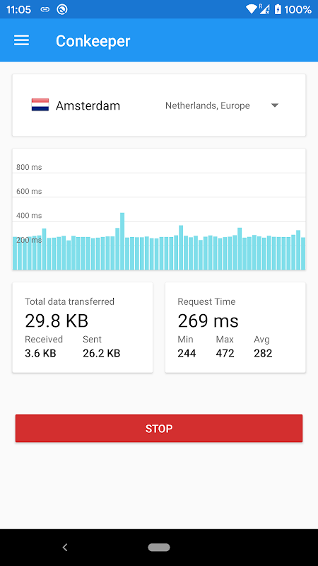 與其他應用程序不同,Conkeeper使用其自己的HTTP服務器。您需要做的就是從全球超過20台服務器中選擇一台,以達到最佳效果。此獨特功能可有效使用連接並節省流量。