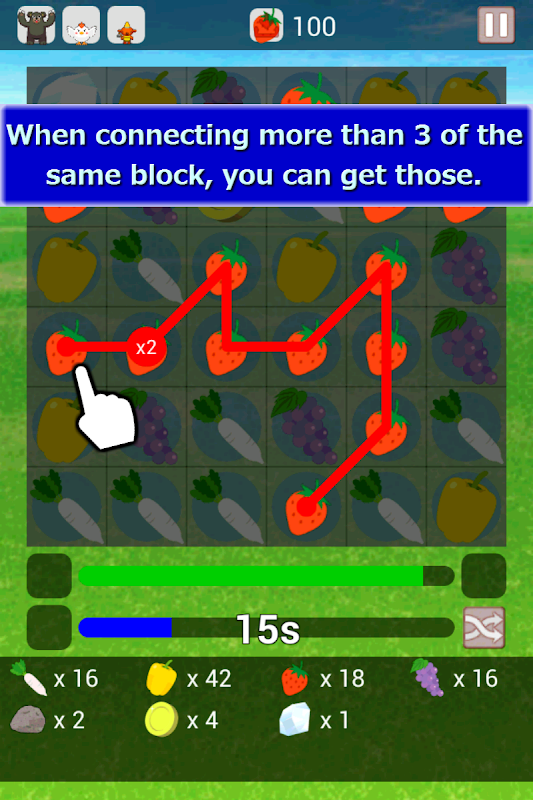 - When connecting more than 3 of the same block(Connect!), you can get those.