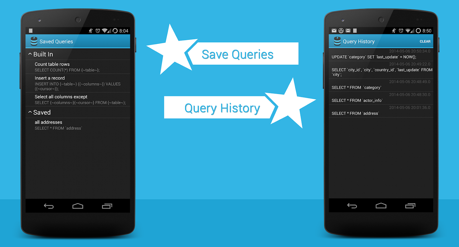 一個MySQL客戶端,SQL Server客戶端,Sybase客戶端,客戶端Postgre為Android。